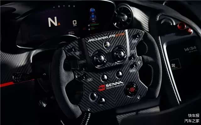 这辆迈凯轮P1 GTR其实是限量生产的58辆车当中的第12辆,虽然整体设计基本相同,但它的空气动力学套件经过重新设计,整体下压力从原来600kg提升到800kg。内饰也已经完全趋于赛道化,装饰很少,但大量覆盖碳纤维材料,方向盘、仪表盘、中控台设计,也是根据赛车的造型设计。