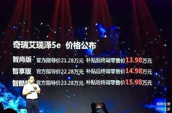奇瑞全新A级纯电动轿车艾瑞泽5e,在北京市吉里文化创意产业园举办了其北京地区上市会,正式宣告入京。作为奇瑞战略转型2.0的首款纯电动A级轿车,艾瑞泽5e以时尚精致的外观和超越同级的卓越性能,让电动小猎豹艾瑞泽5e饱受追捧和热议,上市仅一个月已经销量破千。此次北京区域上市共推出3款车型,补贴后售价为13.98万、14.98万及15.98万,另外还特别推出了5000元的优惠礼包,在保险、上牌、车辆装饰方面提供了一定优惠。