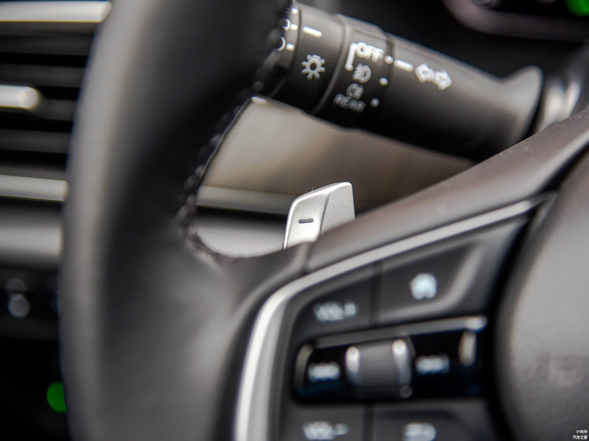就是这个特点使得我Pass了凯美瑞。INSPIRE的动能回收于凯美瑞不同,INSPIRE采用了3档可调!这个非常重要,因为动能回收是有刹车效果的,能由车主自主调节也显得更人性化。而调节方式是需要适应的,采用了换挡拨片的形式,调节逻辑与加减挡的思维正好相反,但基本上我们都是用“一级” 因为等级低,我们适应快,后期就可以逐渐尝试2、3档。(一级的动能回收,使得刹车更为线性,这一点比凯美瑞好太多了)