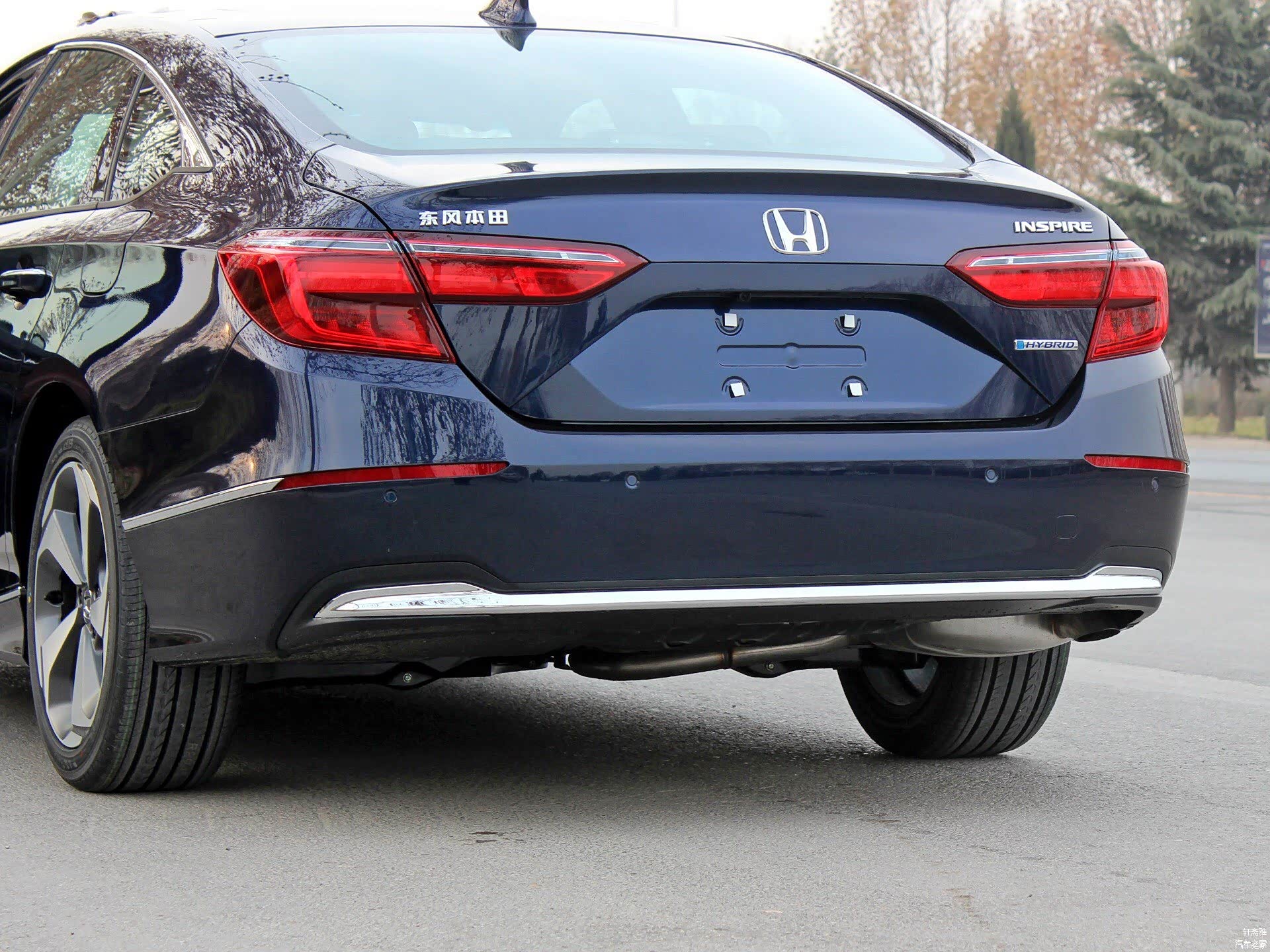 刀锋式的轮毂又和雅阁一样了但是!INSPIRE对螺母进行了黑色处理,通过细节来强调自身定位。作为混动车型,INSPIRE很合规矩的采用了隐藏式排气。底部一条横贯饰条,拉低视觉重心。