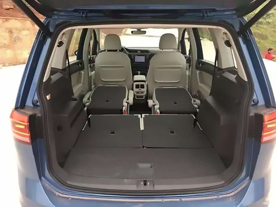 但三款车里,可利用空间最大的,其实是途安L。最大可以扩展到1857L。为什么呢?因为途安L用了一个少见的设计:第二排座椅也可以放倒,甚至副驾驶座位也可以折叠。