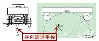横向通过半径(R横):是指汽车满载、静止条件下,后桥或前桥的左右车轮内侧与车桥最低点相切的弧圆半径,如图。