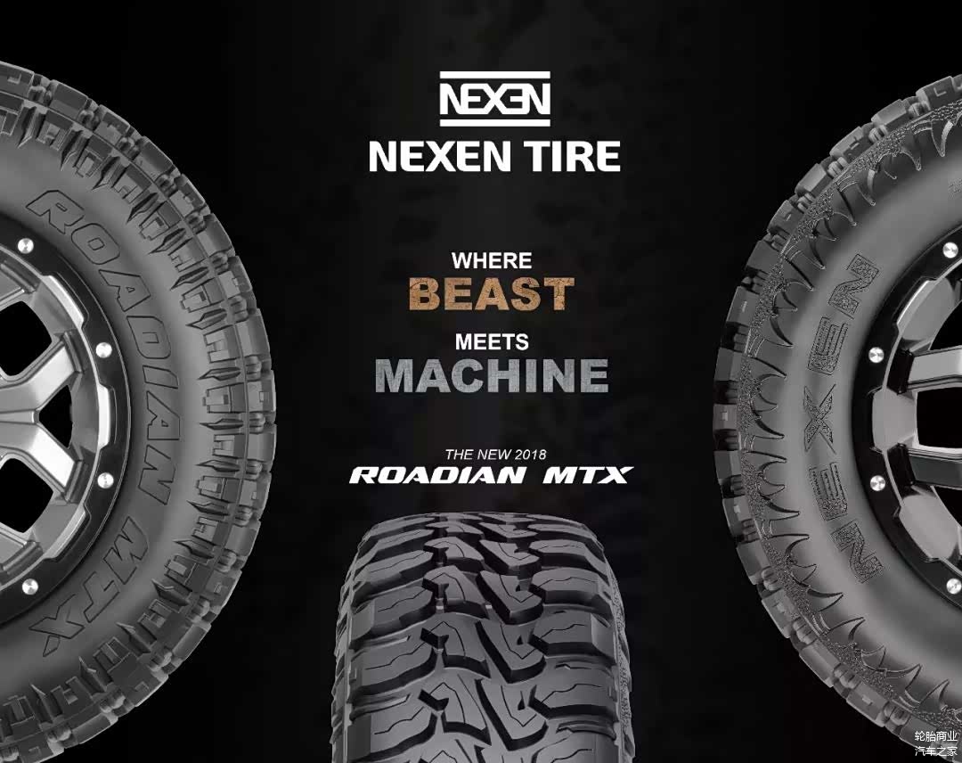 全球领先的轮胎制造商耐克森轮胎(Nexen Tire)在2017年宣布推出一款同时适用于公路和越野驾驶的多功能泥地轮胎‘ROADIAN MTX’。这款轮胎经过强化,最大限度地提高了负载和牵引能力,同时保持了ROADIAN系列轮胎惯有的耐用性和路面舒适性能。