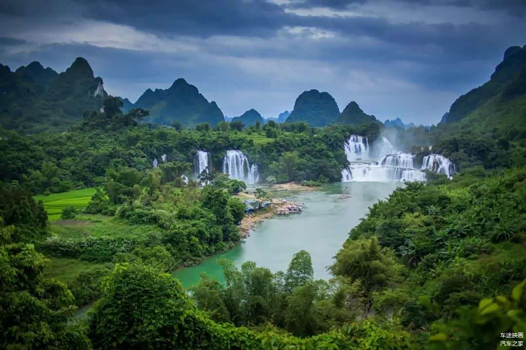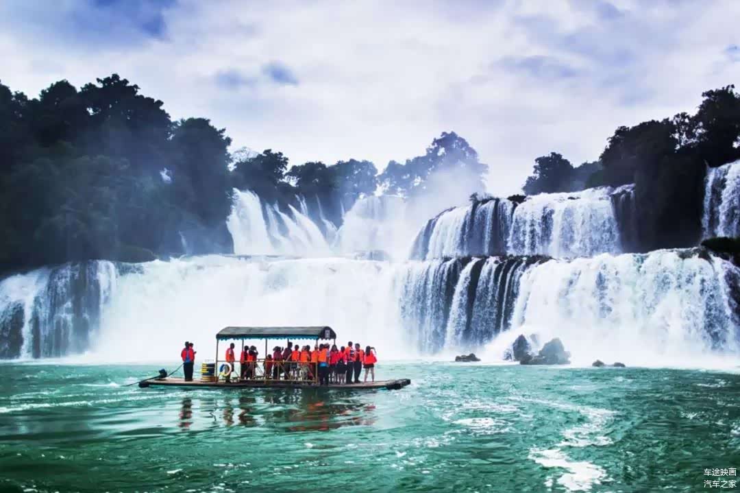欣赏过明仕田园之后,我们来到了此次旅行最美的景区,也就是位于中越边境的德天跨国瀑布。这是亚洲第一,世界第四大的跨过瀑布。你可以乘坐竹筏一览它的全貌,同时另一侧越南的小商贩便会划着小船向游客兜售各种商品。
