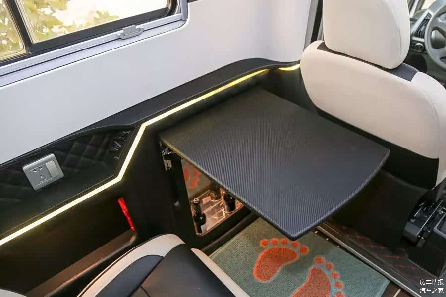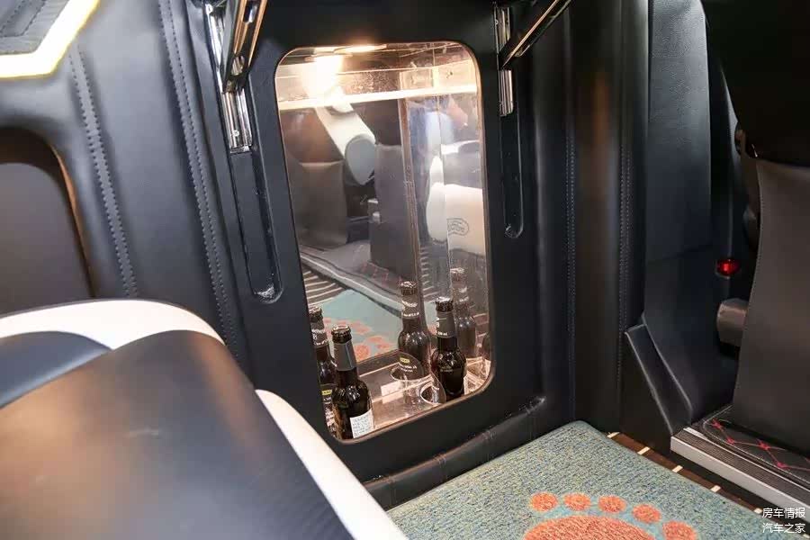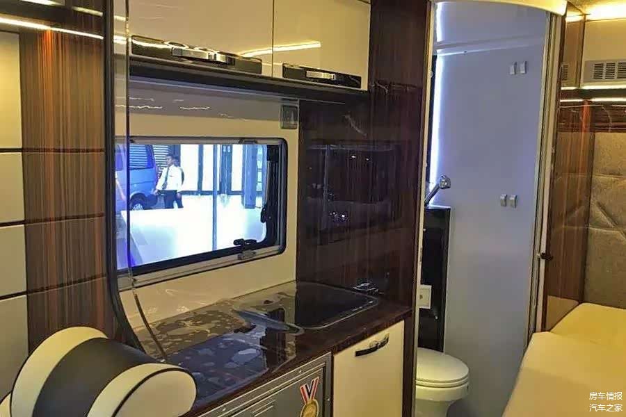 车厢中后部是厨房、卫生间和车尾床,会客区与后方空间两侧被饰板进行了分隔,使得车内区域感更好。