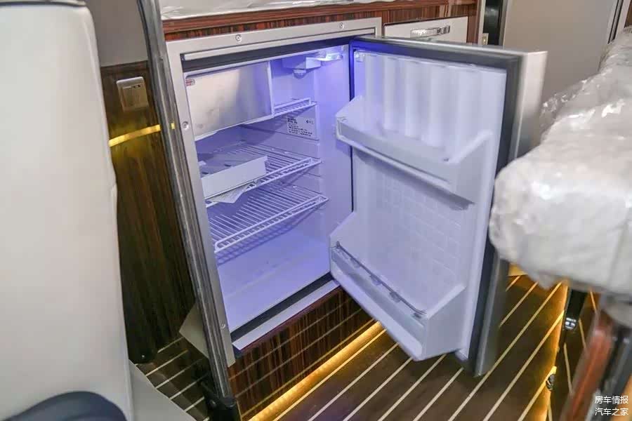车厢外部配有抽拉式燃气灶,需要炒菜的话可以在车外进行,车内配有洗菜池、橱柜、冰箱等设施。
