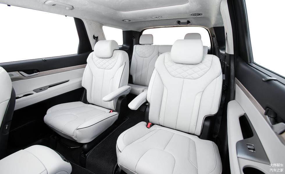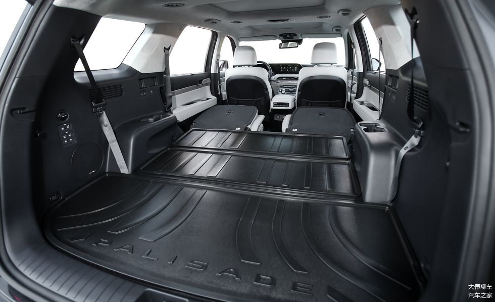 在北美市场,现代Palisade提供七座和八座两个版本,2+2+3和2+3+3,第三排都是三座设计,这和国内常见的第三排两座设计有些不同。至于乘坐空间,反正看照片是非常充裕。即便是2+3+3版本,第二排座椅也支持前后滑动和靠背角度调节,高配车型的第三排座椅甚至可以有电动折叠功能,这实在是贴心。得益于整车充足的长度和方正的尾部设计,第三排乘员的头部空间也很充足,这比汉兰达要好很多。