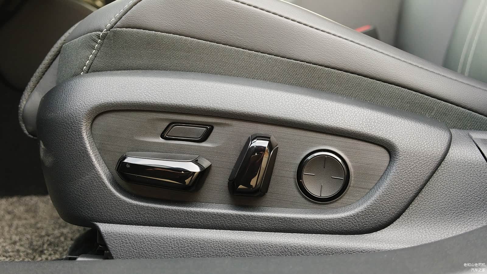 人机方面槽点也不少。先从主驾驶位开始说,一上车我就发现这个座椅的坐垫怎么这么短。我研究了一下,发现这个14向调节座椅是带一个电动腿托。那我就把电动腿托往前伸,发现这玩意在托到我的大腿之前,会先顶到我的小腿,完全不好用,感觉还不如不带腿托的长坐垫好呢!