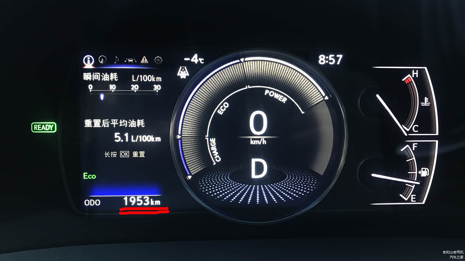 在北京零下3度的大冷天,冷车启动后跑4公里,平均油耗仅8.3升/百公里。跑得再远些的话,随着水温进入工作温度,油耗很快会下降到6升/百公里以内。我再提供一个参考数字,车主2000公里的平均油耗是5.2升/百公里。从我个人的经验看,市区驾驶应该可以比类似动力水平的非混动车节油约30%。