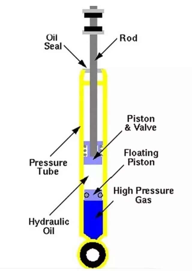 50年代人们就研究出了气压式减震器,它与传统油压减震的区别在于多了一个气体室(一般为氮气惰性气体)。