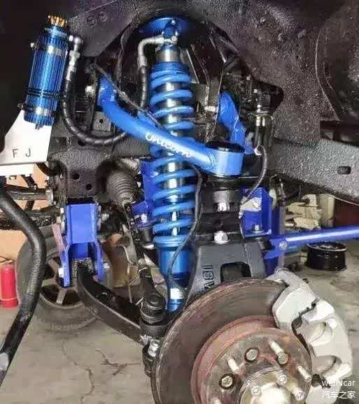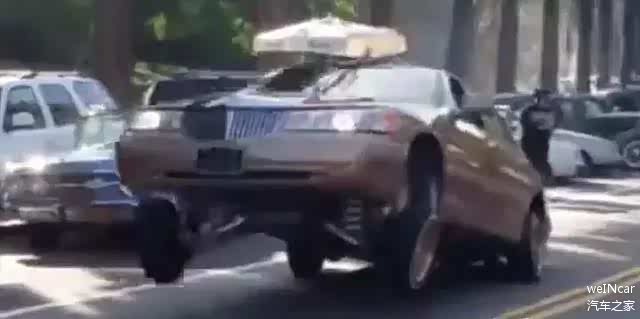 还有些改装爱好者,则故意拆掉避震器再配合主动空气弹簧让轿车能够自己跳跃,因为没有了减震器的衰减,这种弹跳能持续更久。下图是一辆专门改装的无前悬减震器的轿车。