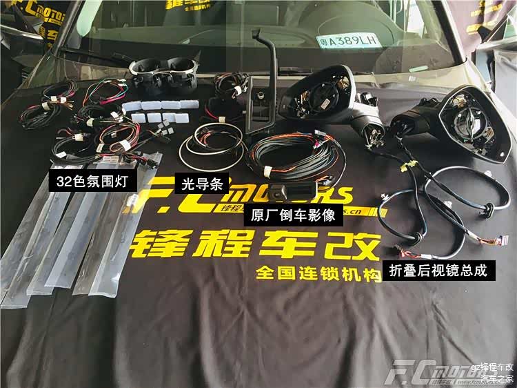 奥迪A5改装配置:原厂协议三十二色专用氛围灯、光导条、角窝灯、四门灯条、折叠后视镜总成、折叠开关、倒车影像摄像头、倒车线束等等。