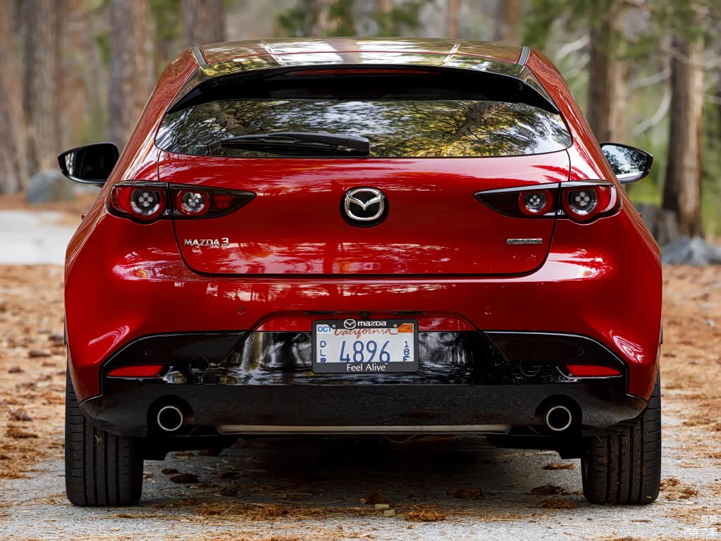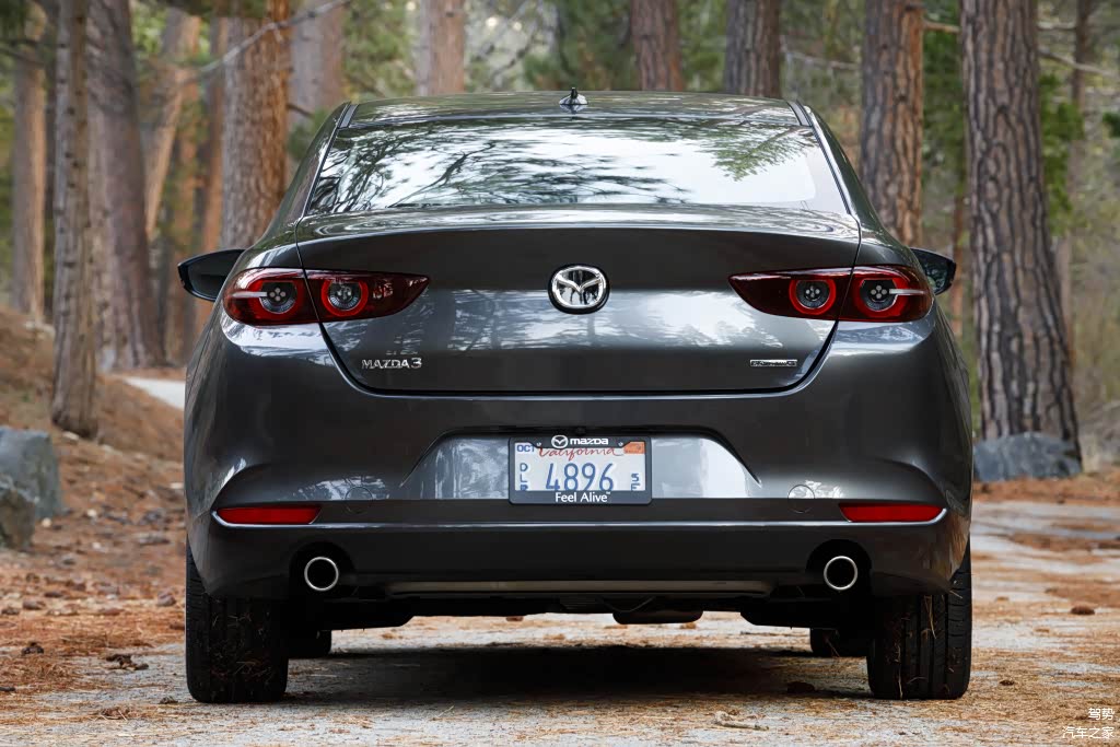 两厢和三厢虽然差了一个屁股的距离,但是全新昂克赛拉在设计上还是体现出了出色的一致性。两厢版本的车尾与车头设计保持一致同样使用黑色元素凸显出运动感,而三厢版本的车尾可以说比车头更加运动,两个版本均采用双边共双出的排气布局,在越来越多品牌采用隐藏式排气的当下更体现出了马自达对运动的追求。