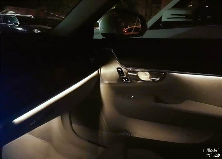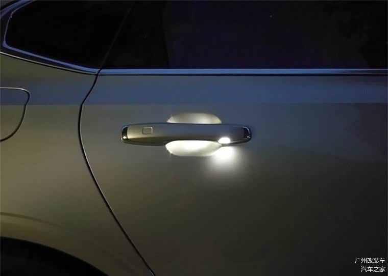 四个门把手也带灯光效果,晚上看也很漂亮。
