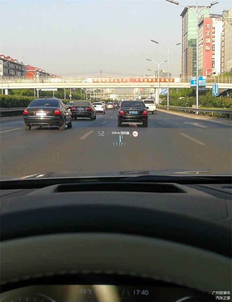 再来说说这个抬头显示,不像有的车是投射在一个板子上,这是直接投射在前挡风上。感觉很好。而且高低亮度可调。