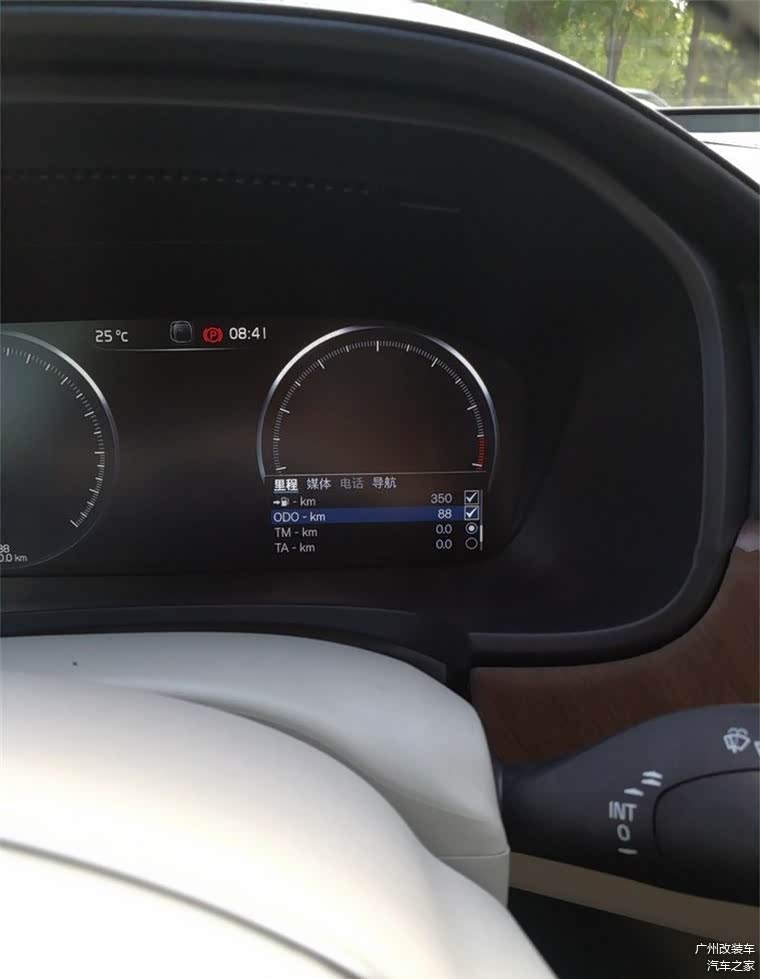 虚拟驾驶舱可以变换四种主题颜色,但所有的调节都在中控大屏上调解,方形盘的多功能按键是无法调节虚拟驾驶舱的。只能如图显示一下车辆的基本信息而已。另外,中控大屏可以变换两种主题颜色。我调整成了白色。