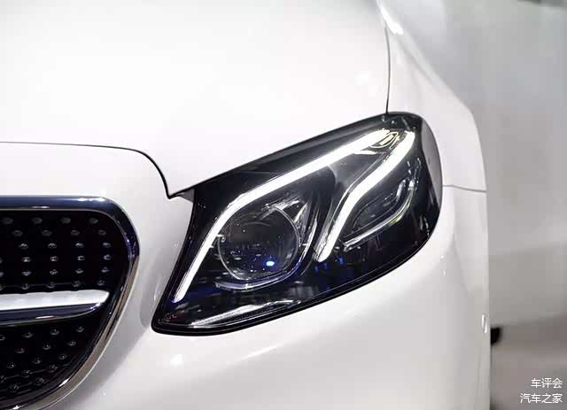 大灯采用全LED光源,与标轴E级一样,中间有两条日间行车灯,车灯方面,奔驰的做法是,日行灯条越多,越豪华。