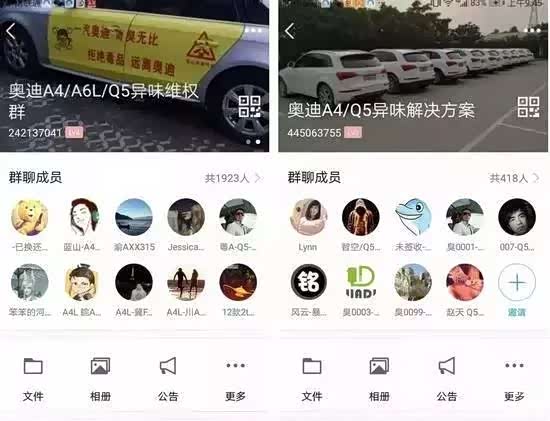 中国的奥迪车主自发组织异味维权QQ群,成员达2000人之多。