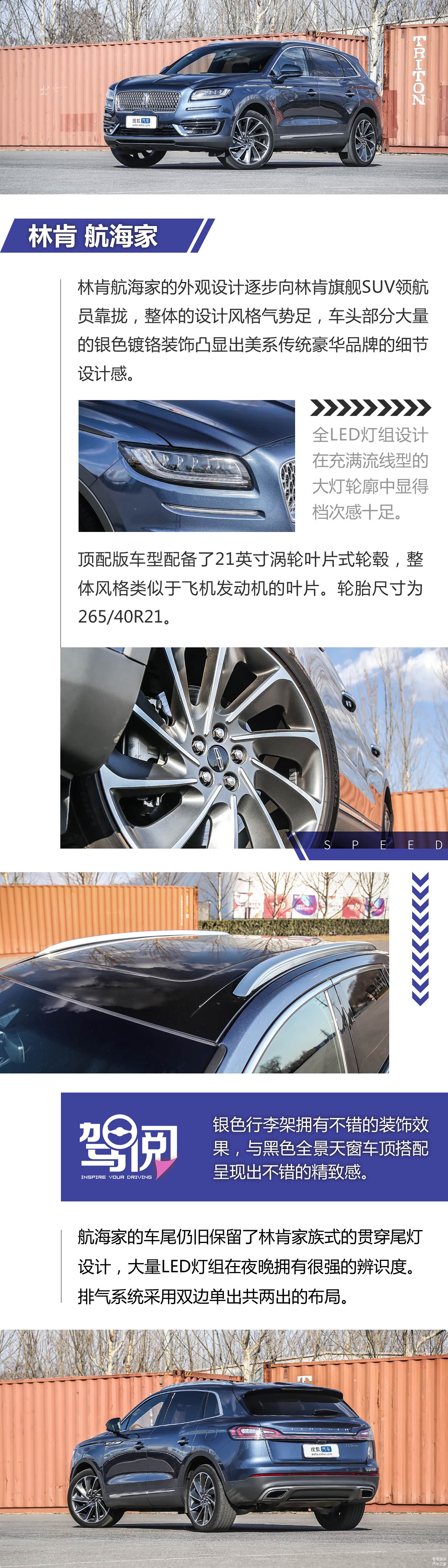 【搜狐汽车 驾阅】说起美式传统豪华品牌林肯,在国内诸多豪华品牌中显得并不张扬,这也正符合林肯品牌一贯低调而富有豪华感的品牌印象。从林肯将旗下SUV车型脱离以字母“MK”开头的命名开始,航海家(NAUTILUS)这个名字也就让这款中大型SUV洗心革面;售价方面,官方指导价格38.88-51.88万元,它仅仅是豪华中型SUV的价格,比如竞品梅赛德斯-奔驰GLC、BMW X3以及奥迪Q5L。