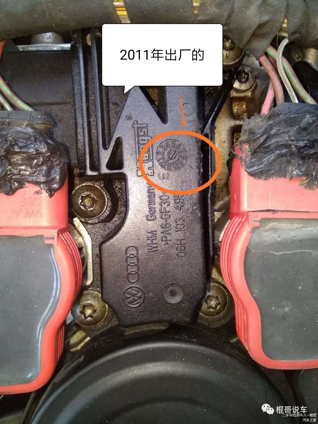 认真一看,这台车是09年上牌的,但是发现油气分离器上面的日期是2011年的,说明这个东西已经更换过了。当然对于这台发动机特有的通病来说,油气分离器已经成为了该车的易损件,4S店更换一次也只需要888