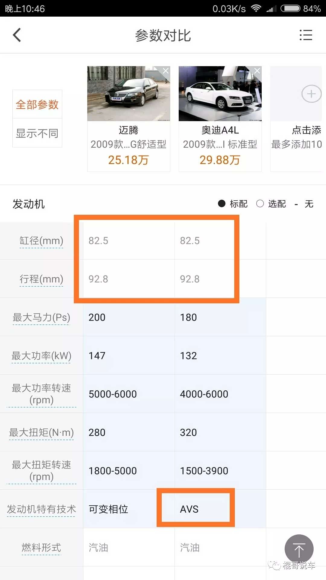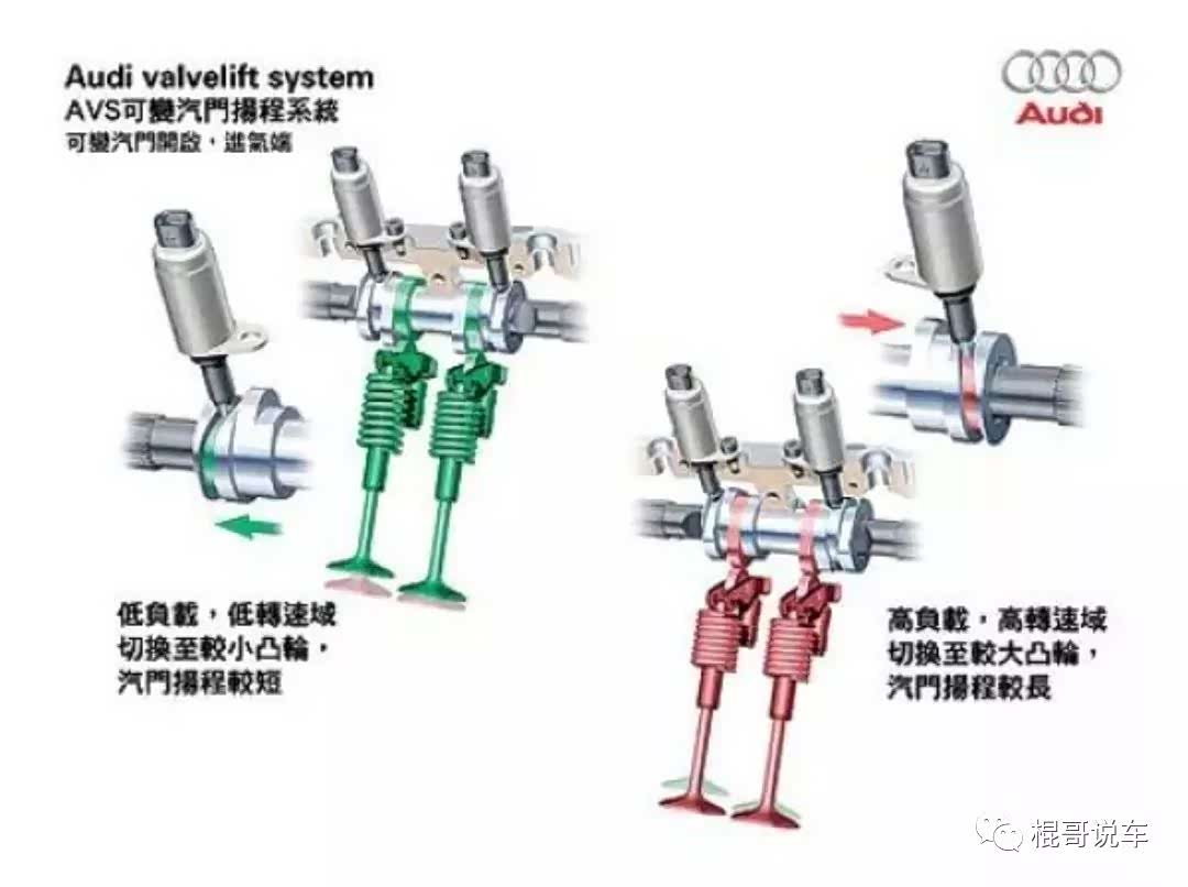 从上面的图片可以看到他们两个连缸径冲程都是一模一样的,只不过是发动机调教特有的技术不一样,奥迪的是AVS可变气门升程,说白了就是跟丰田的VVTI,本田的I-VTEC大同小异,只不过是叫法不同,