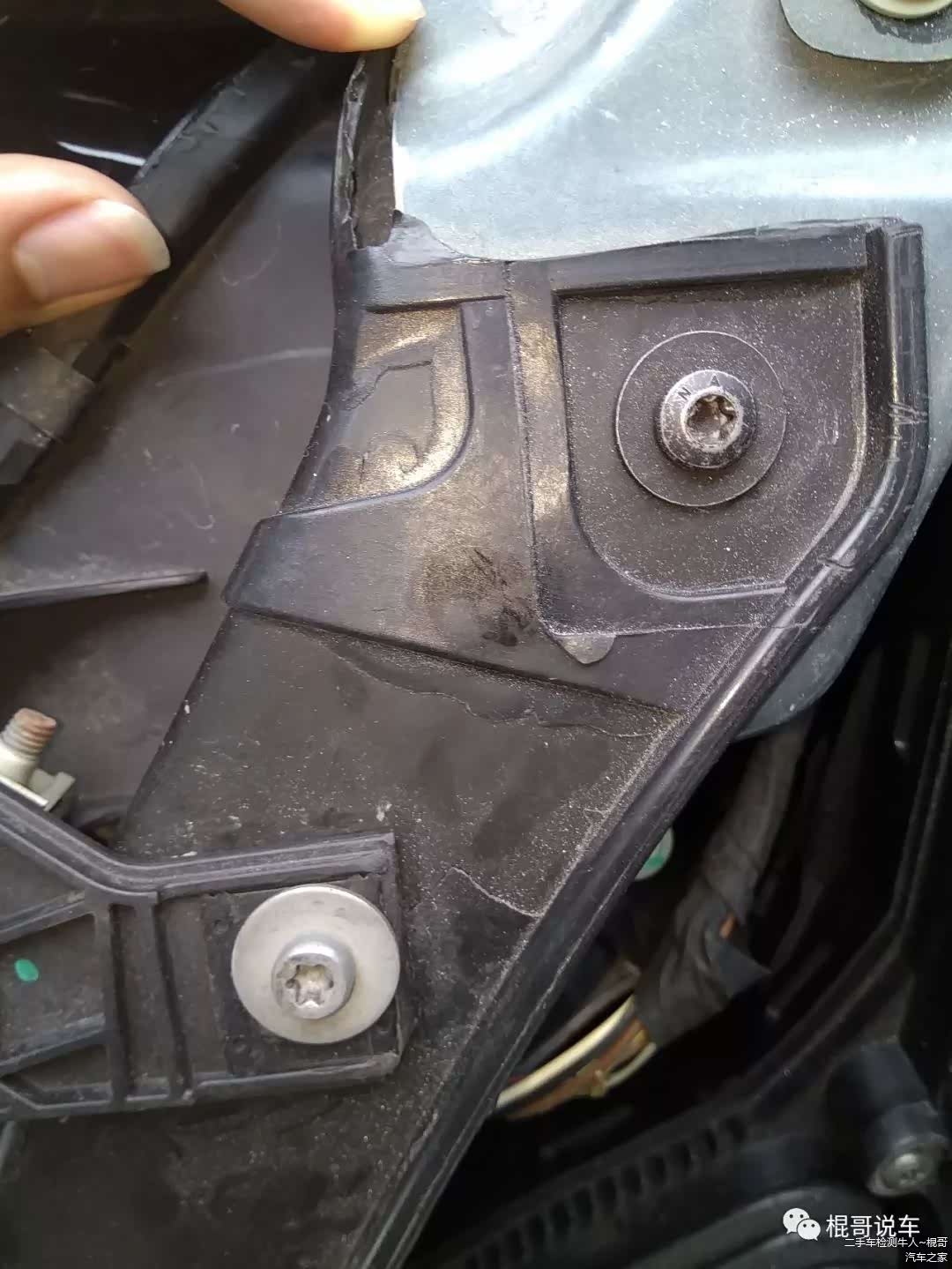 估计右边也是轻微的碰撞致大灯更换,因为发动机机舱盖的螺丝完好,前发动机舱盖前端也没有钣金修复,前防撞梁也没有更换过,水箱框架是塑料的,当然看到这里有一些键盘侠会说,水箱框架塑料岂不是偷工减料?