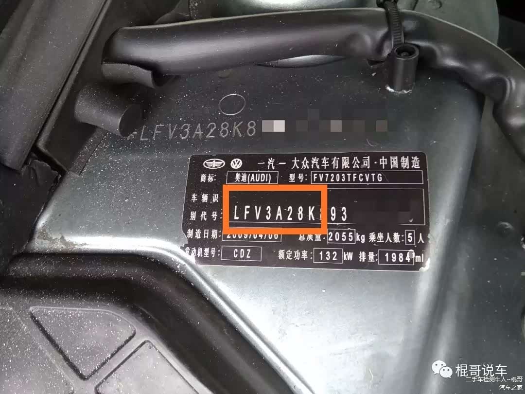 我还有一个更好的区分方法,就是看铭牌,看车架号的顺数第8位,LFV3A28K 车型代码 8K - A4L B8