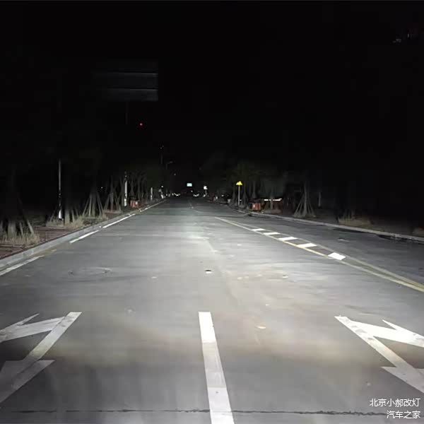 大灯升级室外近光效果:清晰锐利的切割线,均匀的铺路效果,回头瞅瞅之前的淡黄光,这简直是路 途一片光明呀!