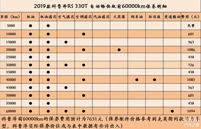 正常用车的话,车辆三年行驶的里程大概是60000km,保养费用合计7631,每年需要花费近2544元保养车辆。以上数据均是参照别克英朗的保养成本得出,别克与雪佛兰同属于通用旗下,英朗与科鲁泽又搭载相同的动力,二者的保养项目与周期基本相同,但别克属于中高端品牌,而雪佛兰的品牌定位更加亲民,所以保养的价格可能会更便宜一些。