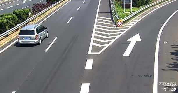 第二个地方就是导流线上,这个地方是绝对禁止掉头的,导流线主要设置在过宽、不规则或行车条件复杂的交叉口。导流线设置的目的是起到管制、引导、警示交通的作用,从而减少交通事故,属于禁止标线。开车时,不能压导流线或者越导流线行驶,当然也不能随意在导流线区域掉头。但是还有下面一种,看着和大多数的导流线有点不一样。这叫渠化导流线,同样属于禁止标线,看到这样的标线也千万不可掉头!