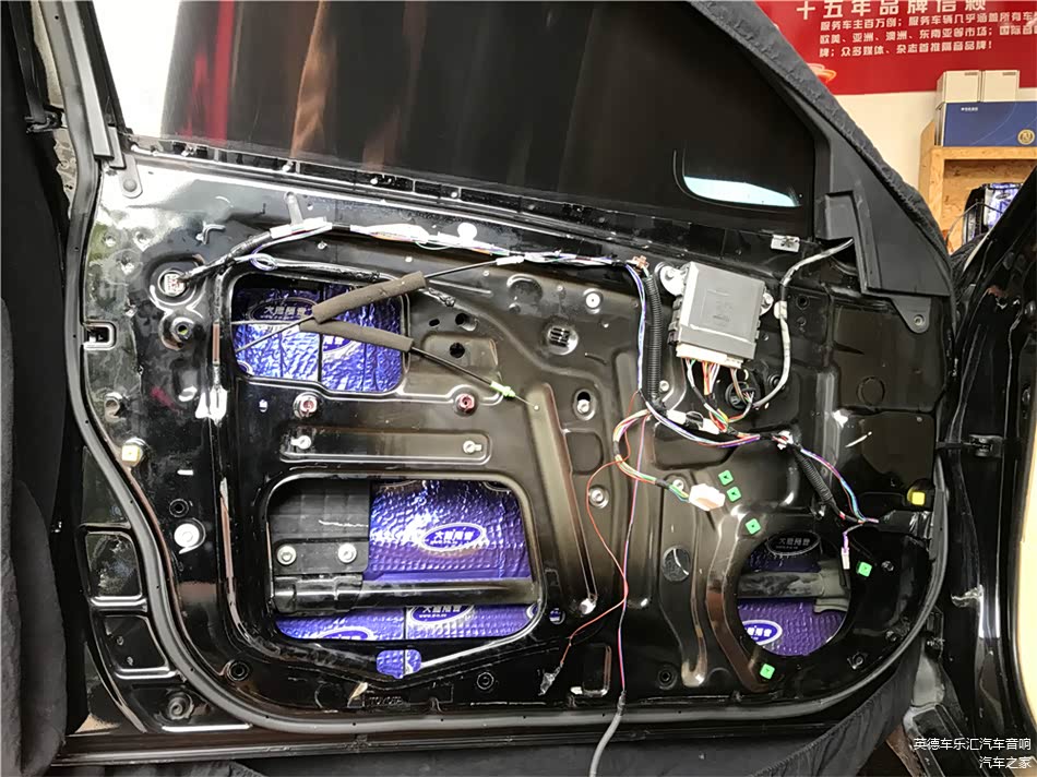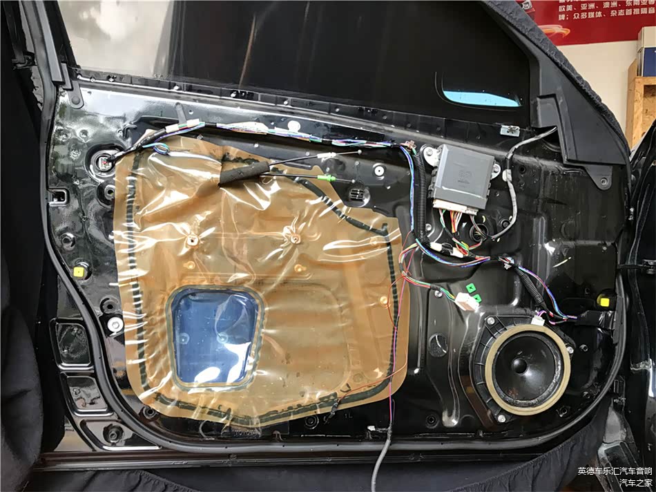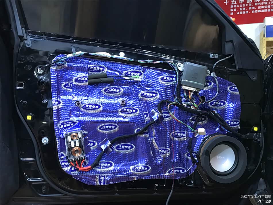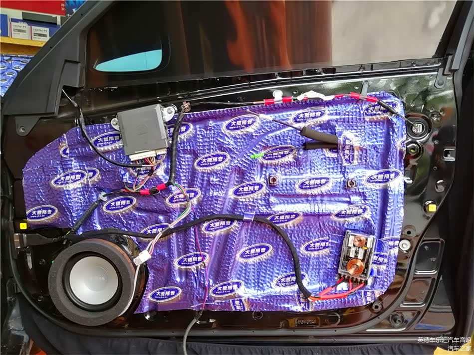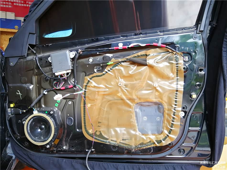 外层隔音除了要压实隔音材料之外,要注意把车门板的线路与分频器固定在隔音材料外层,如果把线材放入隔音材料内的话会导致隔音材料与门板有缝隙,严重影响到隔音的作用性。