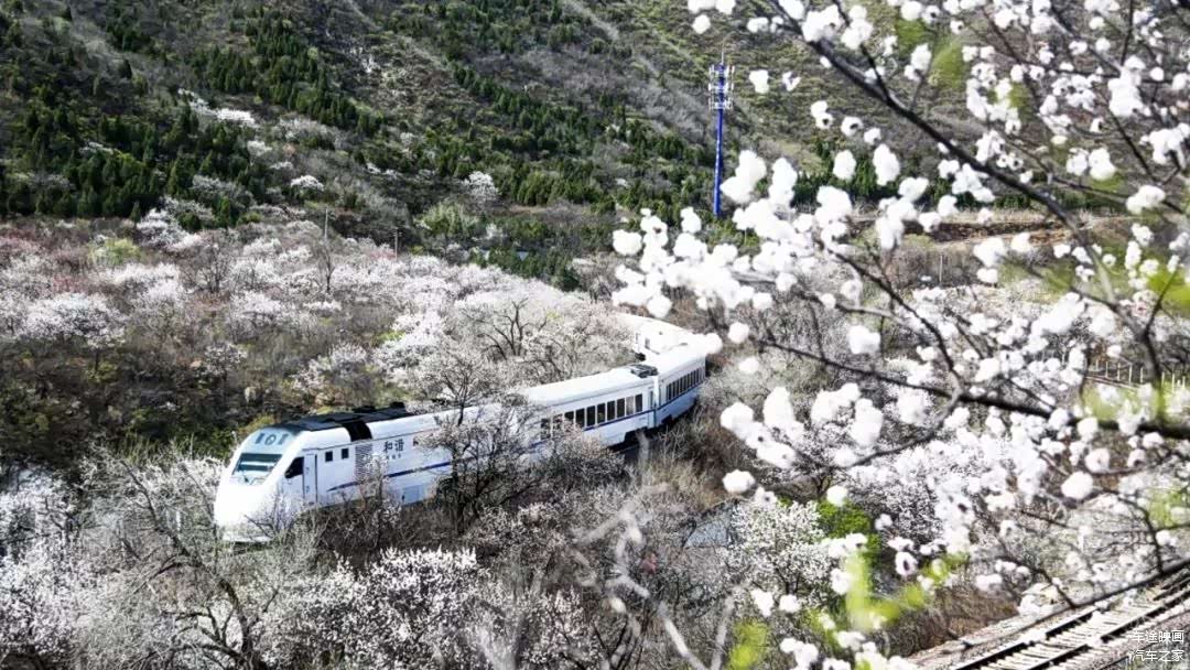 从北京市区驶出1小时后,我将车辆停在了G6居庸关出口附近的停车场,从收费站左侧的小路,徒步进入这个叫做关沟的花海列车拍摄圣地。人们早就用手机搜索了列车时刻表,架起了如长枪短炮似的照相机,等待着白色的S2列车从长城脚下驶过,记录这如梦幻一般的春天。