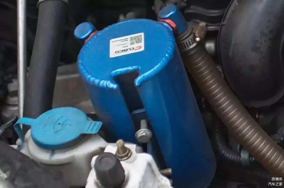 还有这个一看就知道是正品的Cusco透气壶,可以把曲轴箱内引至进气管再次参加燃烧的窜气,分离出机油蒸汽和可燃混合气,把机油蒸汽过滤掉,再把可燃混合气引至进气管,不仅环保还能减少积碳的产生,至于接法对不对小编就不知道了!