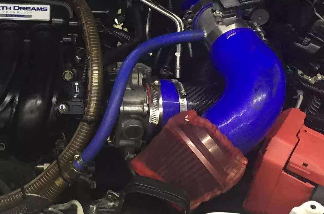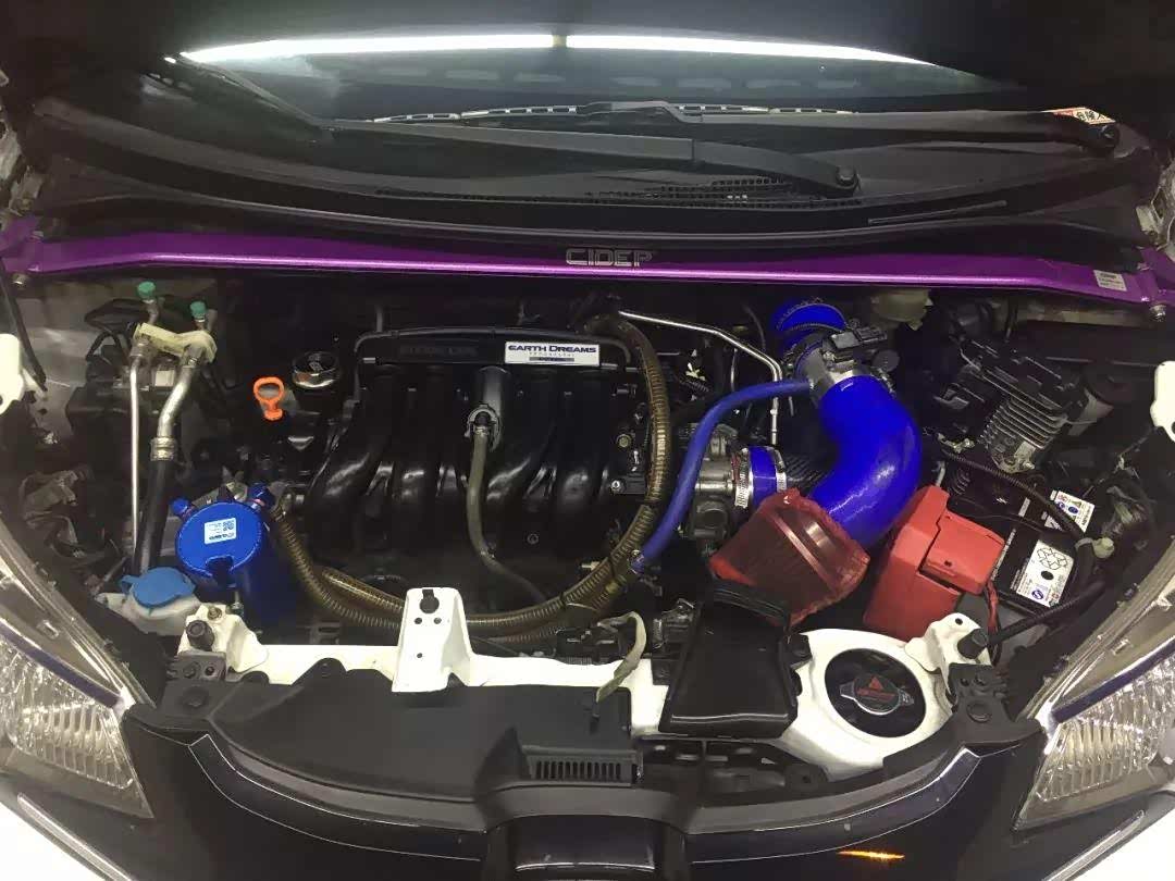 掀开发动机盖,可以看出车主对动力算是做了不少的提升,更换碳纤维的进气"肥肠"虽然没有LRPTEC的进气歧管提升明显,但价格相对会便宜不少。