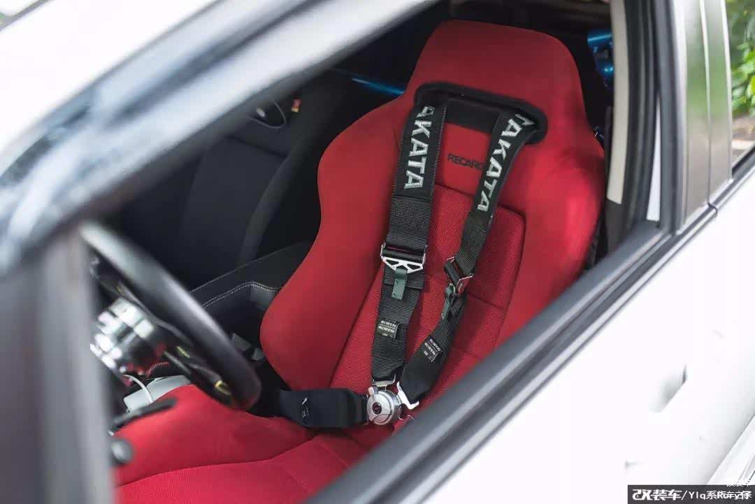 但是最让人喜欢的就是这张RECARO SR3座椅,坐上去还真的是舒服,可能这也是它价格居高不下的原因之一吧。既然换了运动座椅,又怎么可以少了这套TAKATA四点式安全带的JDM改件呢!