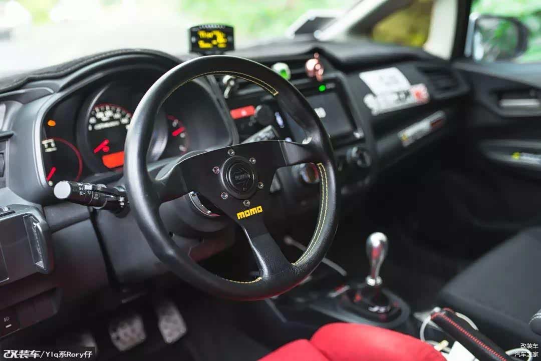 虽然轮毂略显廉价,但当你到了车内之后,你就会把之前的那种感觉统统忘掉。MOMO的320方向盘加SPOON底座基本上成为了玩日系改装的标配,另外车主还加了一个D1的快拆。