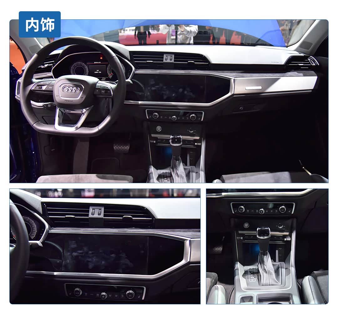 全新奥迪Q3的内饰传承奥迪家族式内饰设计理念,中控台向驾驶员一侧倾斜,营造出一种包裹式驾驶舱风格。平底三幅运动方向盘等元素,彰显出浓厚的运动感。双屏联动设计,提供10.25/12.3英寸全液晶仪表盘+8.8/10.1英寸MMI中控触摸屏,科技感不赖。整体来看,全新奥迪Q3的内饰相比现款来说有了翻天覆地的变化。
