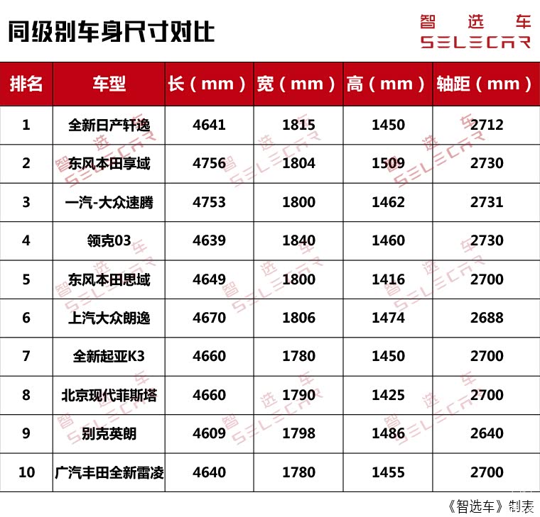 注:以上排名结果是小智综合考虑各车型的车身尺寸、后排乘坐舒适性、后排地台隆起程度等多个维度评定所得,并非仅依据车身尺寸及轴距参数。