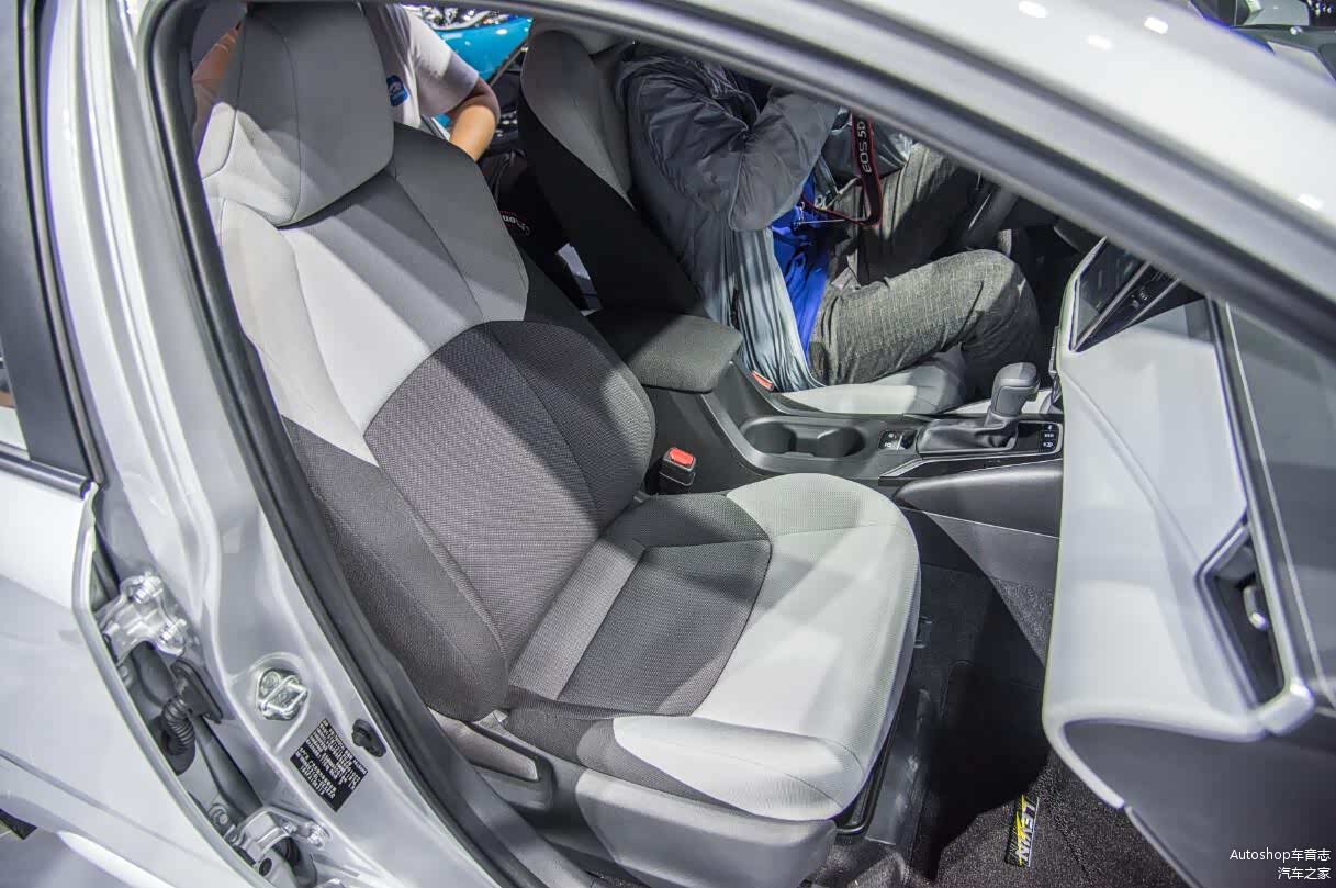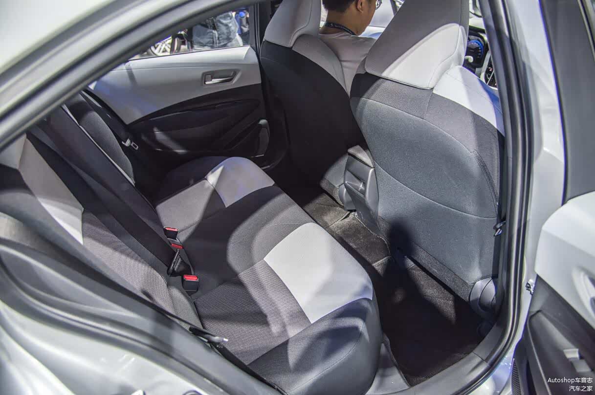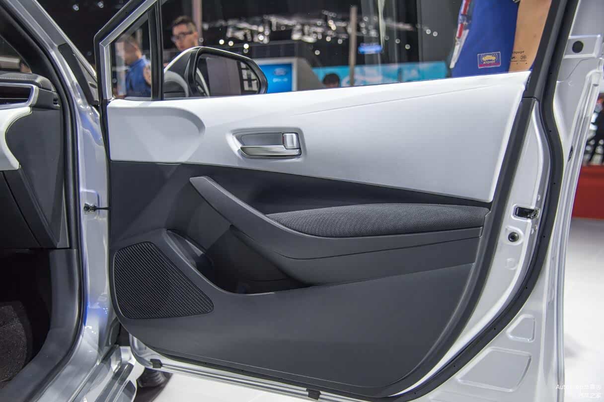 但出众的表现仅限于雷凌的“中控台”,实拍车型虽看似高配车型,却仅配备了廉价的织物座椅,后排乘客也无法享受到专属的空调出风口,略显遗憾;与中控台出色的包裹用料相反,其车门饰板均为硬塑料材质,突变的画风实在叫人难以理解;而在乘坐空间,雷凌的表现则是三台对比车型中最局促的,在前排乘客的腿部空间较为舒展的前提下(膝部距中控台手套箱约5cm,模特参考身高180cm),后排坐垫至前排靠背最短距离仅为24cm(实拍环境复杂难以具体量化,还望理解)。头部空间无明显硬伤。
