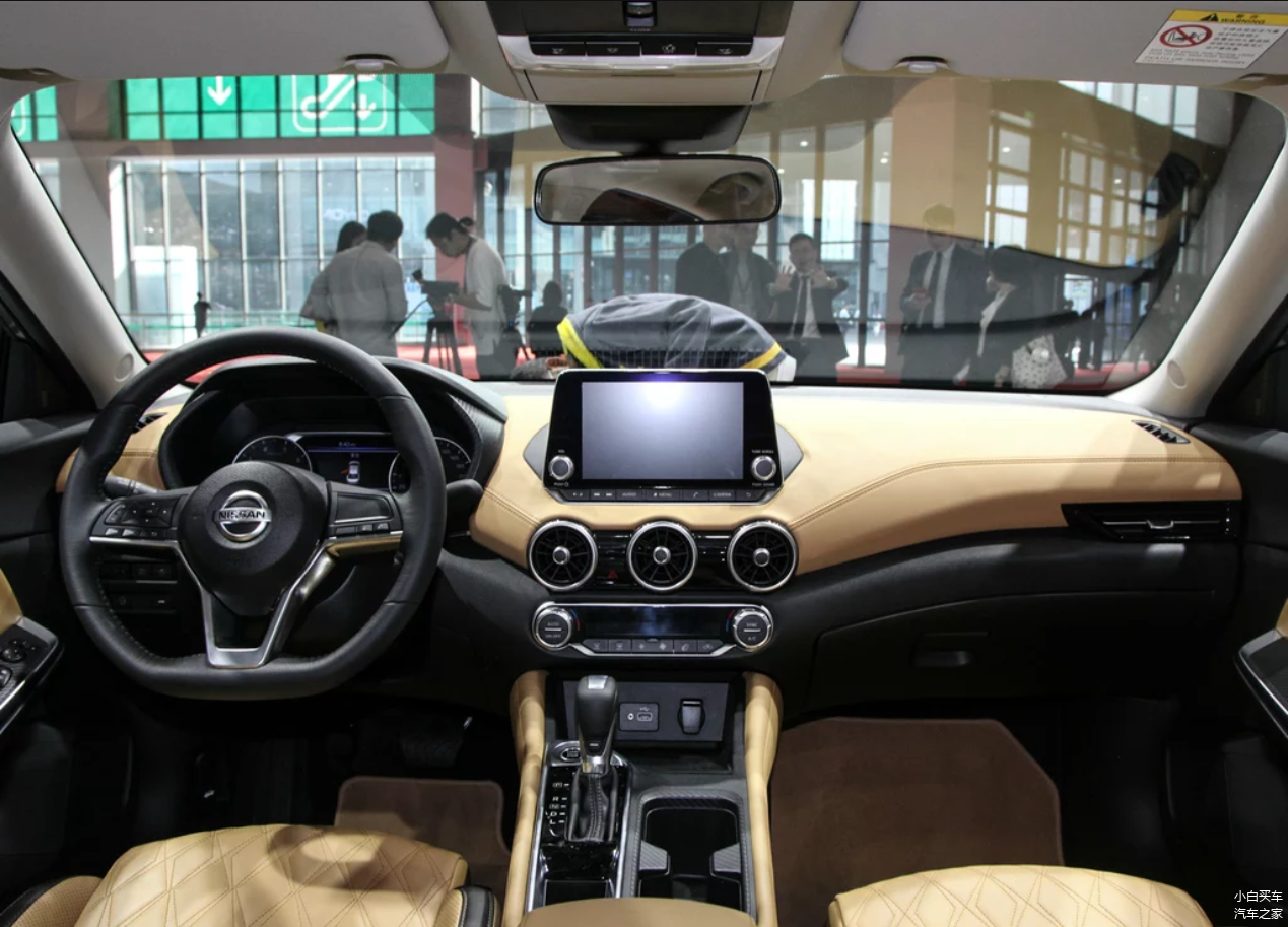 聊完外观就该进到车内聊聊了。轩逸内饰和外观一样,和现款对比一样也是大刀阔斧。整体布局和设计依旧是和外观一样的“小天籁”。从车展的消息来看,中控台和门板上用了比较大面积的皮质和软性材料覆盖,质感会比现在以硬塑料为主的内饰好很多。