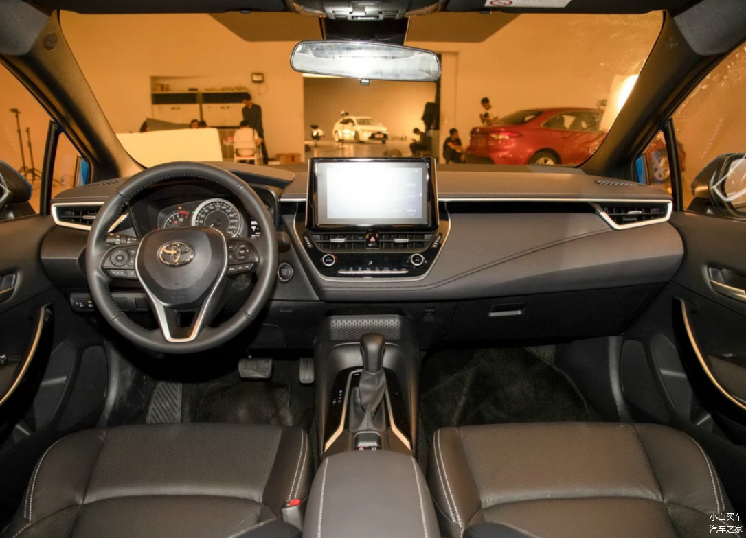 雷凌的内饰就比较特殊了,除了有一套和海外同款的内饰外,还有一套科技版专属的内饰。先来说说海外同款内饰,采用了悬浮式中控屏设计,和C-HR比较相似,比起现款更符合当下的潮流设计,中控台采用了大面积的软性材料,还有缝线设计来提升质感。