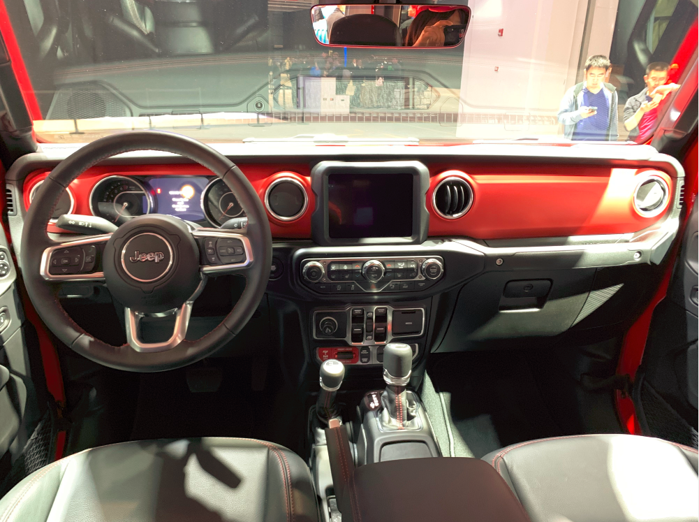 内饰方面,Jeep Gladiator的设计风格与牧马人保持一致,运用了大量的矩形和圆形的设计元素,整体车内氛围凸显出来了硬派风格。另外,8.4英寸中控大屏和7英寸液晶显示屏提升了一定的科技感。