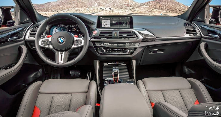 内饰方面,宝马X4 M的内饰和普遍宝马X4保持高度一致,其在细节之处加入了大量的专属元素,如M全液晶仪表盘、M三辐式运动方向盘、红色一键启动、碳纤维材质的内饰条等,营造出了强烈的运动氛围。不仅如此,宝马X4 M还能选配带有Merino真皮、电动头枕调节和可发光M标志的M筒式座椅。