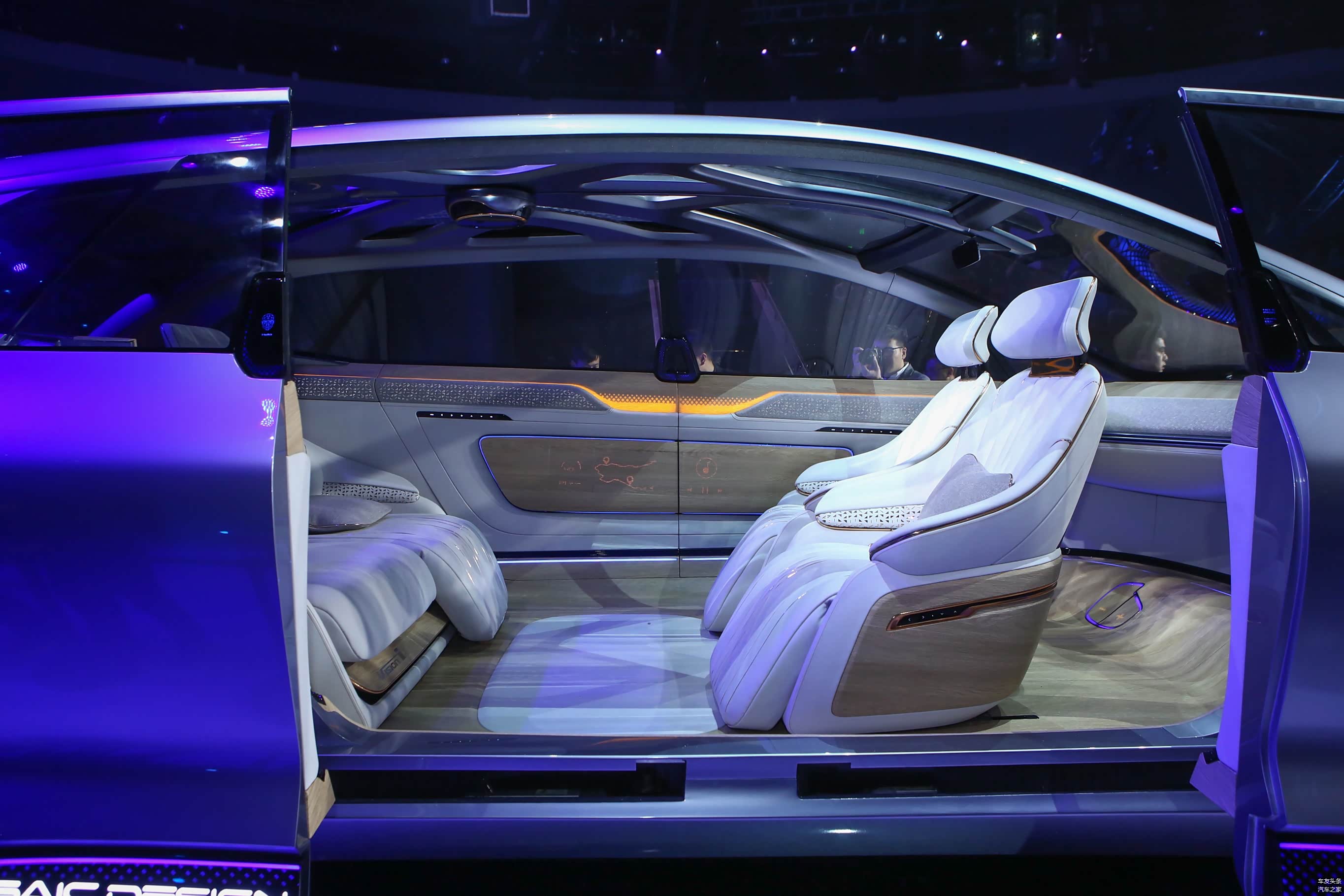 这台首款5G零屏幕智能座舱的内饰融入了冥想、教育、休闲、驾驶、睡觉、会议多种出行场景,旨在打造更为自由的出行空间。而其风格前卫的座舱设计则显现出极强的未来感。此外,前排座椅可实现180°旋转后的前后排面对面乘坐,显得更具人性化。