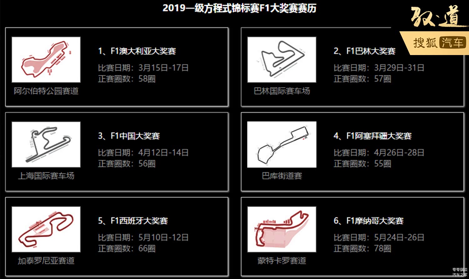 翻开2019赛季赛历,澳大利亚站作为揭幕战开始于3月17日,收官战阿布扎比则延续到12月1日举办。F1中国站成为F1历史上的第1000场比赛,同时赛历还拉长了法国站、奥地利和英国站之间的比赛间隙,避免了“三连战”再度出现。