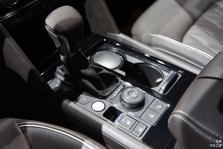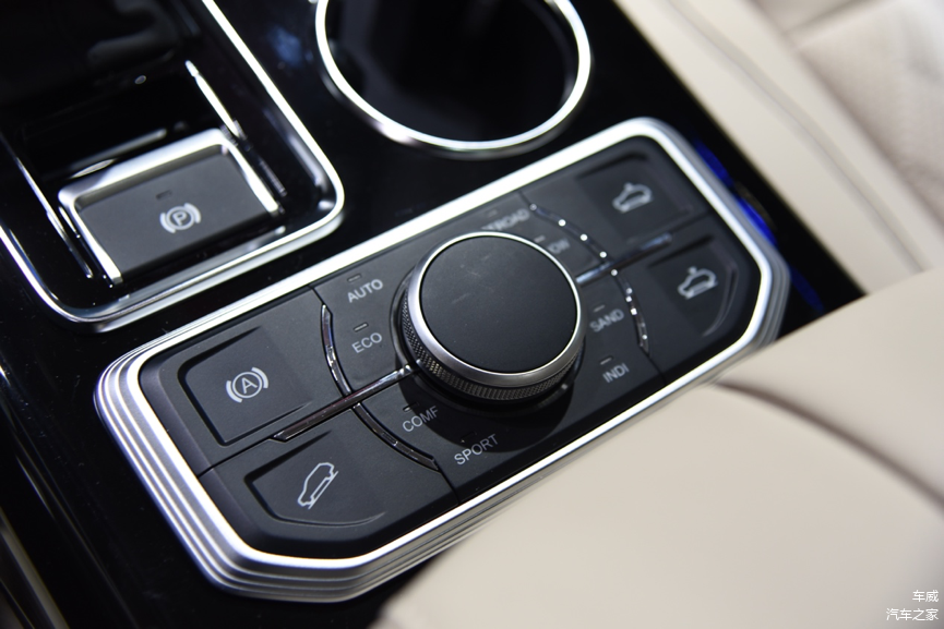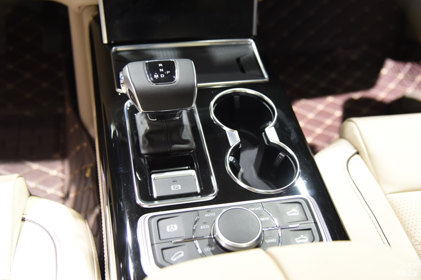 根据现场实车的展示,我们在车内发现了红旗HS7的四驱系统操控机构和底盘升降功能。其中,四驱系统将提供8种工作模式,分别为自动/节能/舒适/运动/全地形/雪地/沙地/自定义。