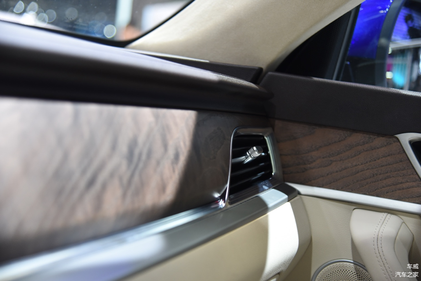 内饰方面,红旗HS7采用了对称式中控台设计,中央是红旗家族化的上下双触控屏,仅保留了一列关键的实体按键。红旗HS7车内以白色真皮为主基调,中控台、车内等处辅以质感出色的木纹饰板修饰,而且新车还使用了白色植绒面料覆盖顶棚和车柱,营造出极强的豪华感。