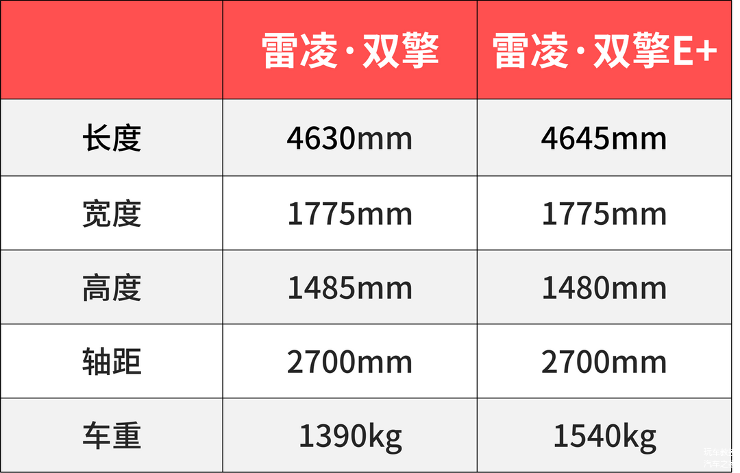 两车的车身尺寸没有太大的区别,轴距均为2700mm。雷凌E+因为大容量锂电池的缘故,比雷凌·双擎重150Kg,将近2个成年男子的重量。