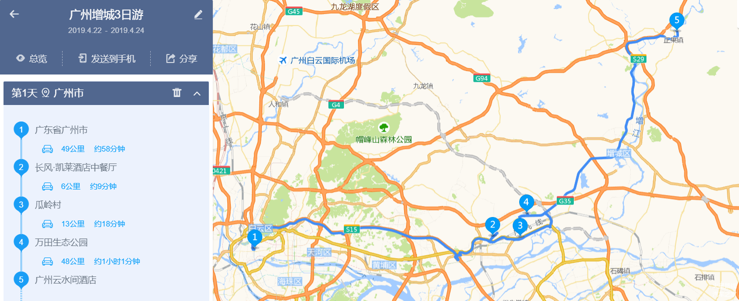 早上起床我们从广州出发,往东出发,走沈海高速广州支线行驶45公里,到达增城。