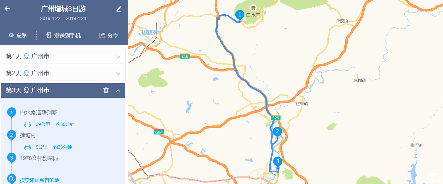 白水寨→莲塘村→1978文化创意园→广州